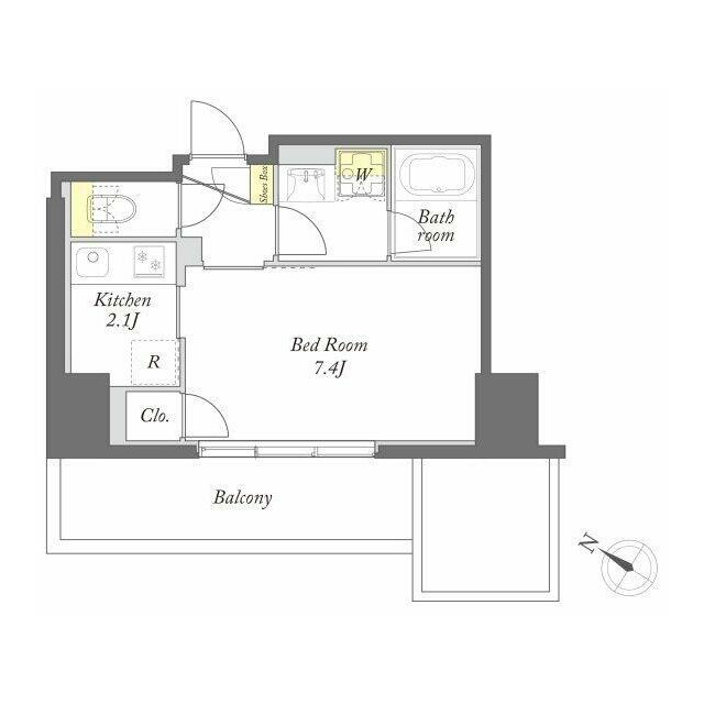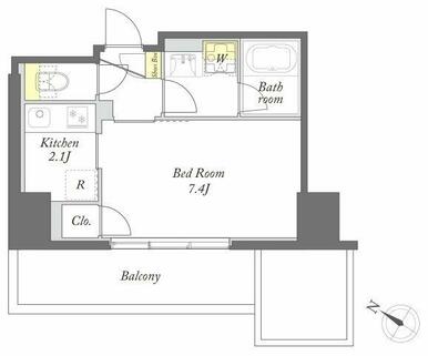 | 間取り | 1K(洋7.4、K2.1) | 主要採光面 | 南西 |