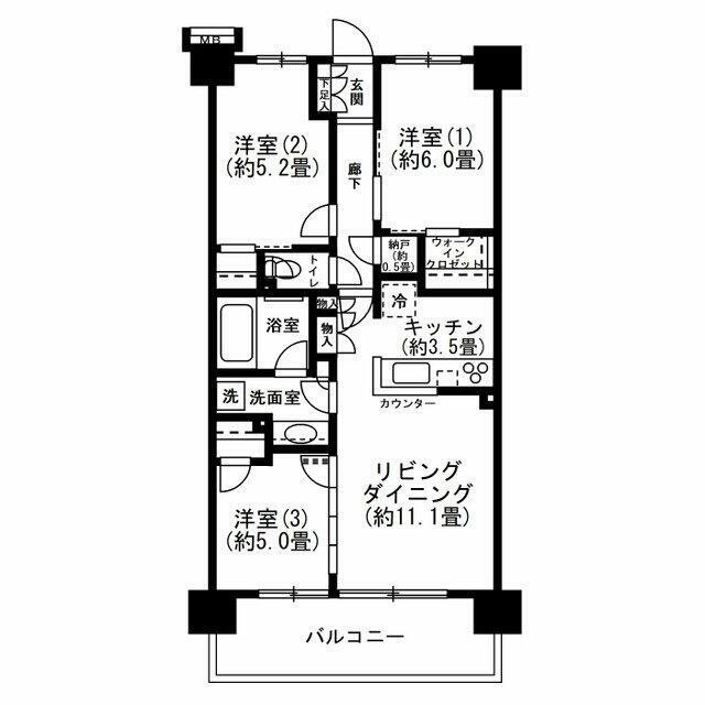 3LDK(洋6、洋5.2、洋5、LDK14.6) |